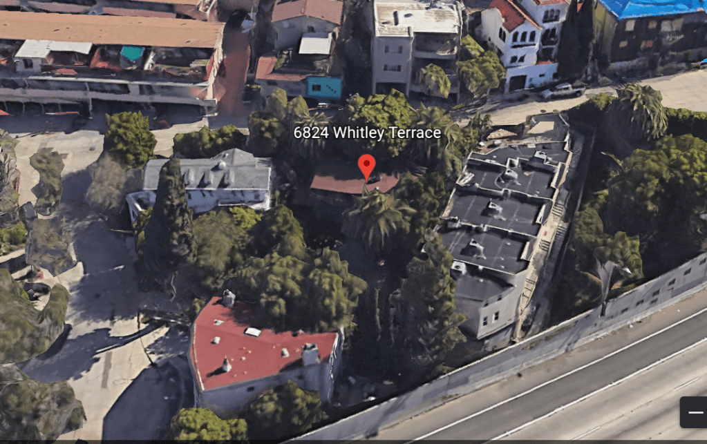 Notable residences constructed prior to 1920 include: 6824 Whitley Terrace (1915) and originally owned by Roy S. Clements, motion picture director and screenwriter of the silent era. This 2 bedroom, 1 bathroom 1,428 square foot house is located on the other side of the 101 freeway just below Iris Circle. The front of the property is obstructed by trees. (See screenshot below).