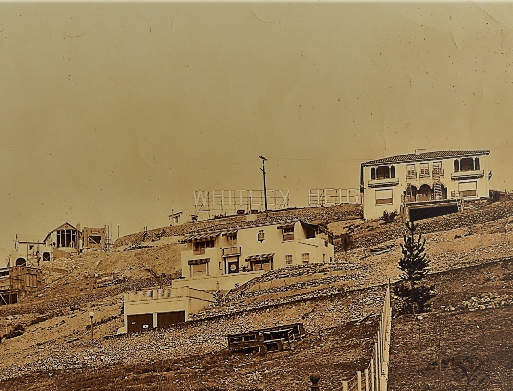 Whitley Heights was no exception and as the letters went up on top of the hill on Whitley Terrace, so did the construction of H.J. Whitley’s new home at 2073 Grace Avenue. Actually, his house stood adjacent to the letters for the whole town to see.