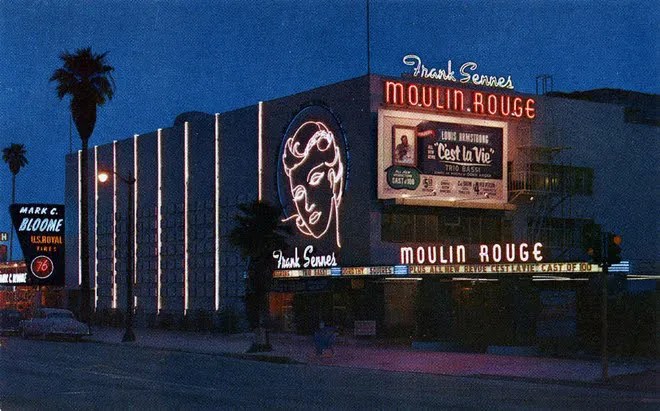 Fun Fact: Twenty year old Terry Harvey lived here in 1960. He actually broke up a fight between Frank Sinatra and a Moulin Rouge parking attendant during the time he lived at the Fairfield address. Sinatra arrived at the Moulin Rouge (a famous nightclub pictured below) with Sammy Davis Jr., Dean Martin, and Milton Berle. Sinatra had been drinking all night and first confronted actor, John Wayne in the club about Wayne hiring a blacklisted screenwriter. Then he got upset with the parking attendant and Sinatra’s bodyguard assaulted him and had to be hospitalized. Sinatra was overhead saying, “Tell that guy not to sue me if he knows what’s good for him. I’ll break both of his legs.” He then took off with his bodyguard in a Cadillac. The Moulin Rouge was popular in the 1960’s but then changed owners and name.
