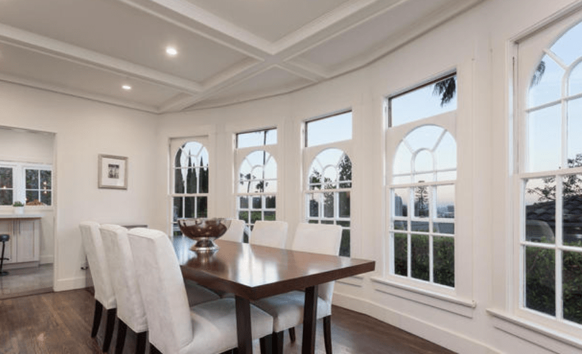 The house was bought by Mr. and Mrs. Wallace Riblett and in 1922, they put a roof on an existing patio that was positioned in the back center of the house and put in 5 windows to make it another room. In the photo above, note the 5 windows in an arc pattern in the back of the house, which is now used as a formal dining room. The Riblett’s put the house on the market a year later and it was purchased by Carl and Rilla P. Palmborg who resided in the home from 1932 up until 1956. Below where the porch was located and is now used as a dining room.