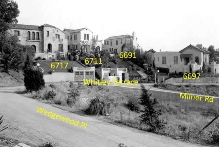 6711 Whitley Terrace is adjacent to 6697 Whitley Terrace (Vignola/Davies residence). 6691 Whitley Terrace is around the corner, but backs up to 6711 Whitley Terrace. 6691 Whitley was owned by actor Eugene O’Brien (Richard Barthelmess rented this house from him) and was being built the same time as 6711 Whitley Terrace.