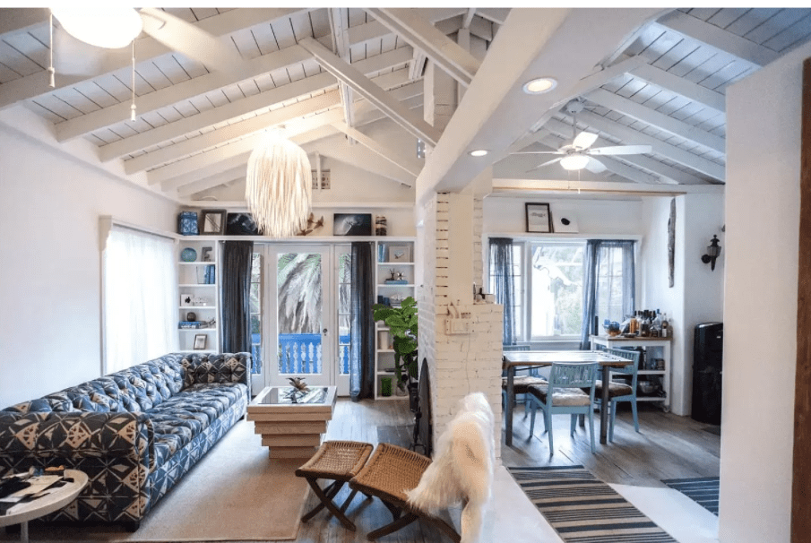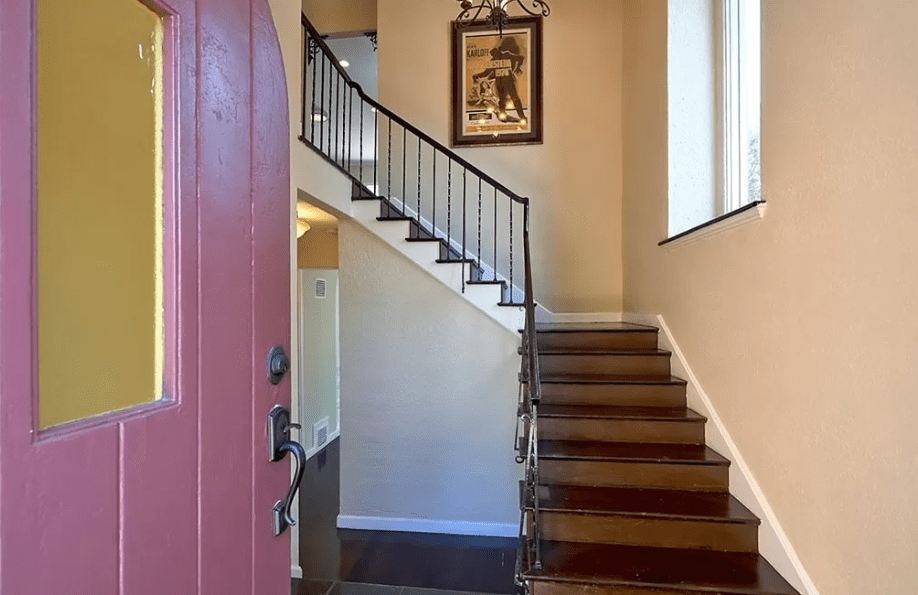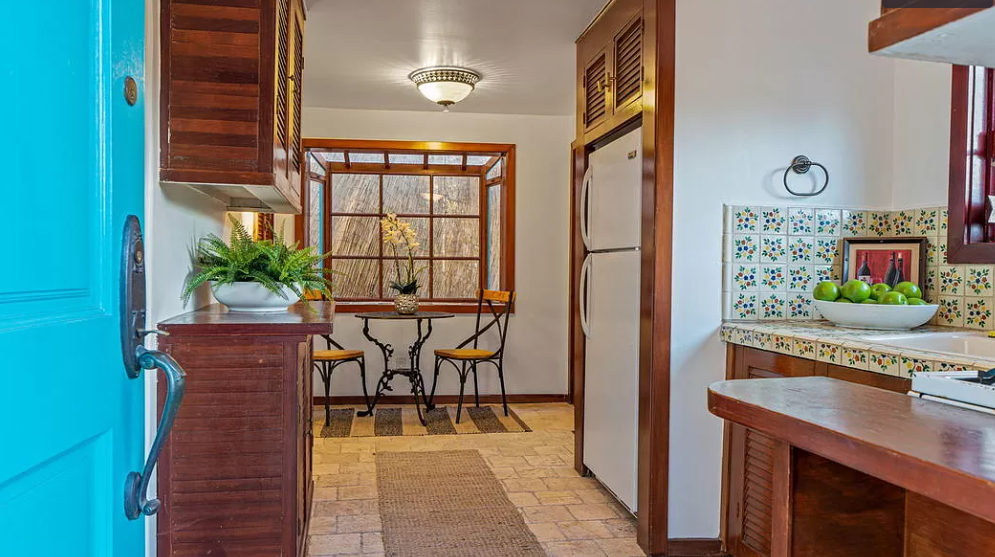 In June of 1921, Jennie’s eldest daughter, Virginia was engaged to Gerald B. Bernard of Berkley. By September, they were married in Riverside and Mrs. Walz Turner was building an one bedroom apartment above the garage where they would be residing. Pictured above, is the blue door on the side of the house where the apartment is located. In 1923, the Bernard’s were still living at 2004 Las Palmas as they announced the birth of their daughter and by 1925, they had relocated to Mexico City. Below is the living room area of the apartment that is located just above the garage.