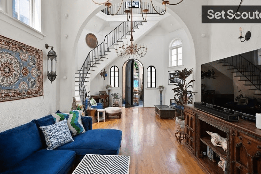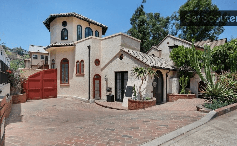 2049 N. Las Palmas Avenue is 2300 sq. foot with 2 bedrooms and 3 bathrooms. The O’Davoren’s house often host huge parties at the home starting with their housewarming party in 1923. The home was the setting for many early Hollywood gatherings and concerts in the amazing 35 foot, two-story living room rotunda. There is a separate two-story guest house in the back that has one bedroom and one bath. It is said that Norma Shearer met her husband, Irving Thalberg at this house, possibly during one of the soirees. Below is a more recent photograph of the living area in the main house. The door in the back leads outside to the backyard.