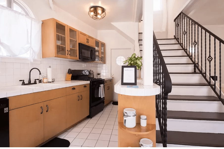 Below is the guest house that is located in the backyard of the residence. The front of the guesthouse faces the back of the property with the main house to its right.