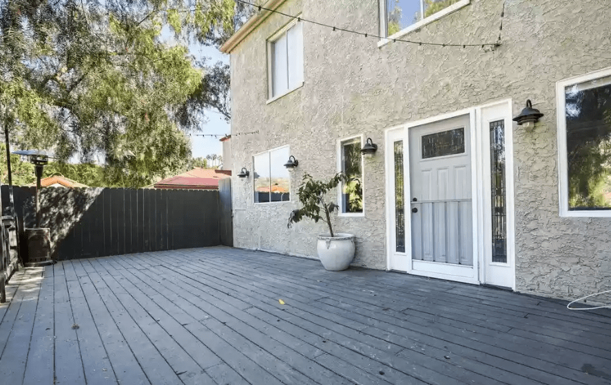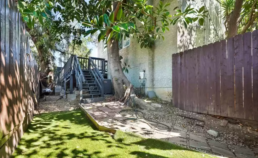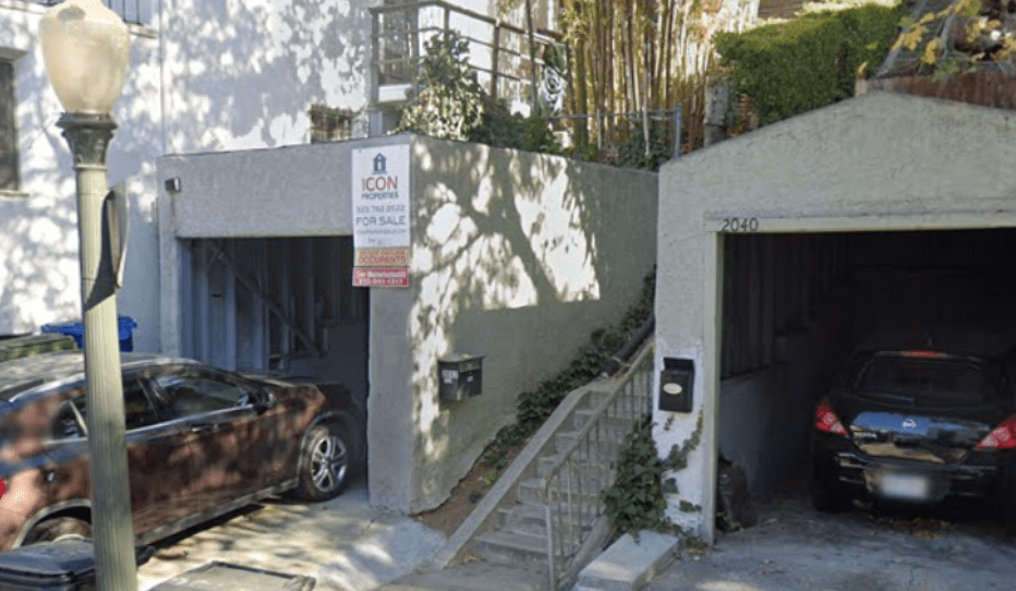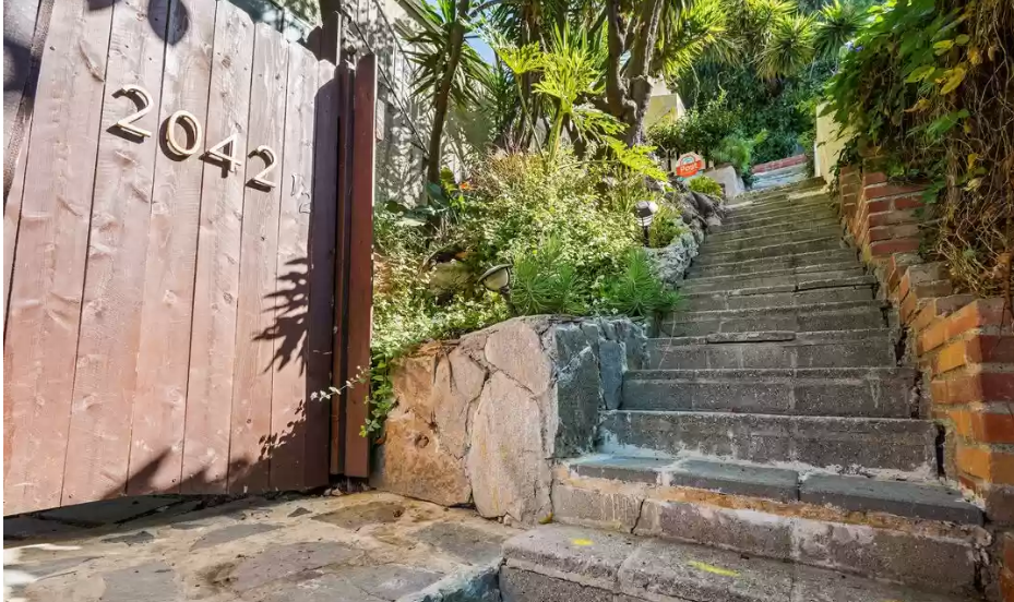 The two story duplex has a total of 2,200 square feet and lists 2042 1/2 as the lower floor and 2042 as the upper floor with a separate entrance. Below is the entryway to 2042 1/2 Las Palmas and the stairway continuing to 2042 (left) and 2040 (right) Las Palmas.