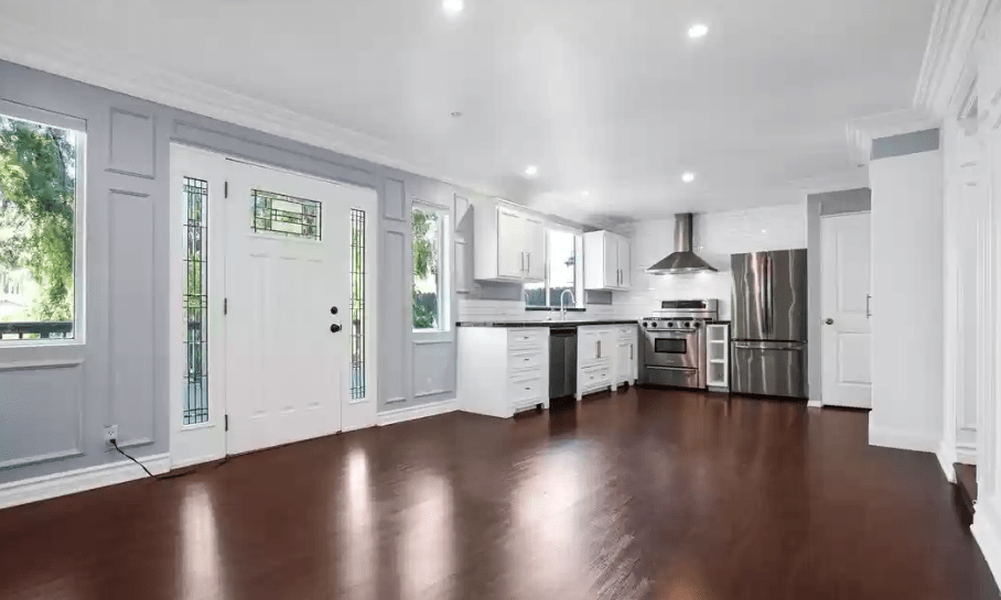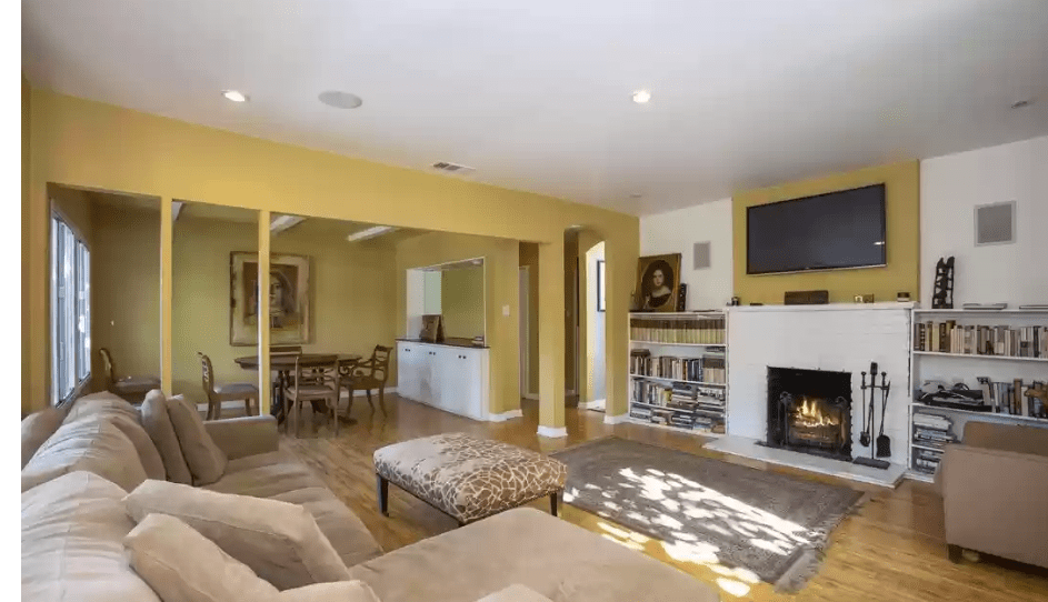 In 1953, theater actor, producer and director Alphonse Luttringer died while living at this property at the age of 74. Luttringer had spent 55 years in the entertainment business. He was part of the WPA Federal Theater Project, which was created in 1935 and its purpose was to create jobs for unemployed theatrical people during the Great Depression. In 1936, the Boston director and eight of his colleagues were accused of sexual misconduct after they invited four young actresses, who were part of the WPA, to a hotel so they could “parade” around the room. The girls indicated that there were liquor bottles all around the room and the men were intoxicated. Below is the living/dining area of the upper unit. This residence was recently on the market and sold in April 2022 for 1.4 million.