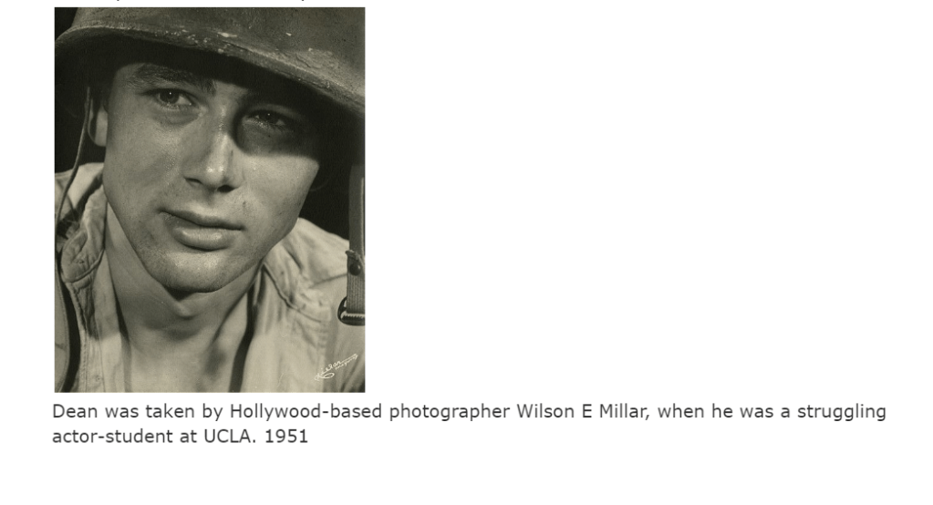 In 1940 actor Wilson Millar lived at 2042 1/2 Las Palmas Avenue and was credited 8 movies between 1937 and 1953, including the 1952 film, April in Paris, starring Doris Day. His claim-to-fame was perhaps, photographing James Dean in 1951 and was listed as a struggling film student who attended UCLA. Below Millar’s signature can be seen on Dean’s photograph.