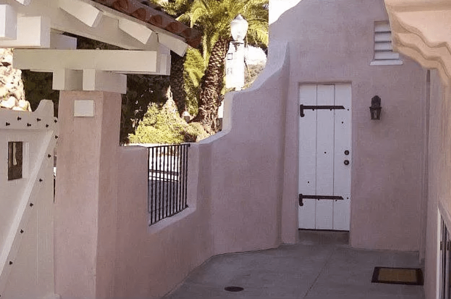 Flora De Vere continued to reside in the home until her death in 1963. Her daughter, Mary, and her husband, Raymond Traynor, replaced the windows, re-plastered the master bedroom and den, put in a new wet bar in the den, new kitchen cabinets and remodeled the stairwell in 1966. They put the house on the market shortly after. Below is the inside of the patio from the front gate.