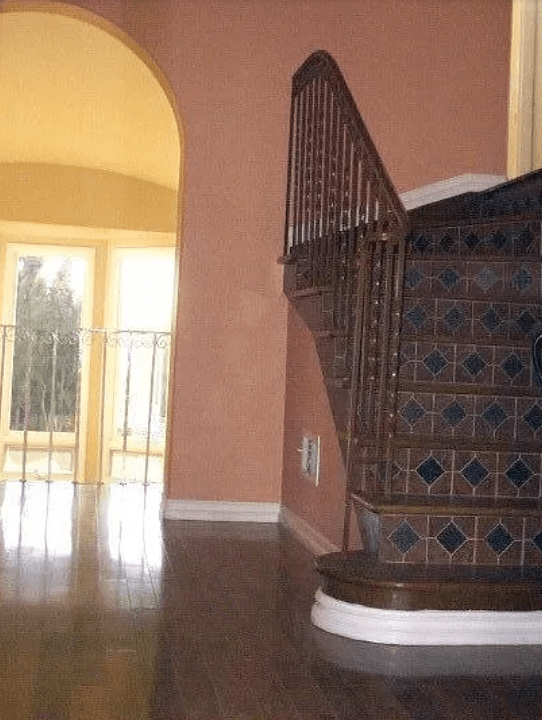 Since the house has had primarily one owner from the time is was built up until the 1960’s. Felix, a real estate broker, led what appeared to be a quiet life with his wife, Flora and two children, John and Mary. Other than discovering two dead bodies at a nearby residence in 1936, Felix has lived peacefully until his death in 1949. Below, is a tiled staircase from the first to second floor. A sunken room can be seen in the next room.