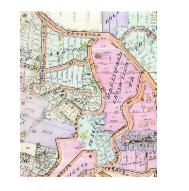 Originally listed as 2122 Iris Drive, this 2,093 square root home was built by architect A.S. Barnes in 1922. In 1922, Whitley Heights Park was a new subdivision of Whitley Heights purchased by H.J. Whitley from Emma L. Hambleton for $55,000. The property, known as The Araby, was enclosed at that time by Cahuenga Avenue, Curlew Street and Whitley Terrace. Below is an early map where the land was located at one time called the Hollywood Grand View Tract showing one house built in the area on lot 22.