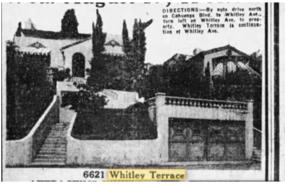 Since the 1960’s there have been several homeowners completing chimney and foundation repairs. Note the advertisement below in the 1920’s giving directions to the home off Cahuenga Blvd. to Whitley Avenue which could not be driven today due to the construction of the 101 Freeway.