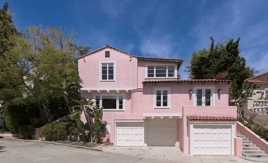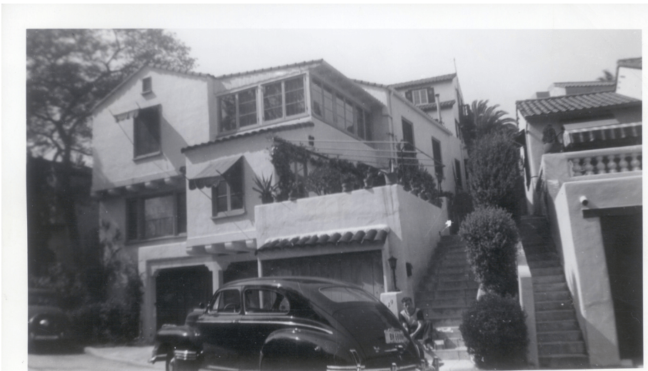 2127 Whitley Avenue was built by architect Arthur S. Barnes and owner, Peter Doerr. With a permit registered in 1922, the house was finished in 1923 and was originally a single-family residence. However, in 1925 Doerr added another kitchen, two bedrooms, and one bathroom addition. Pictured above in 1942, the house included a three car garage and listed the property as a duplex; 2127 and 2129 Whitley Terrace. The patio above the garage that is on the left, would be replaced with another room as pictured below. There are staircases on both sides of the home which act as separate entrances to the duplex. This property is three houses to the left off of Cahuenga Blvd. on Whitley Avenue, which used to run directly through Whitley Heights, prior to the 101 Freeway Construction.