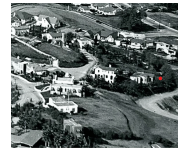 Below: 2127 Whitley Avenue is shown in the early 1920s as indicated by the red dot. The house is shown prior to any of the room additions. The circular kitchen and the front door can be seen on the left side of the house.
