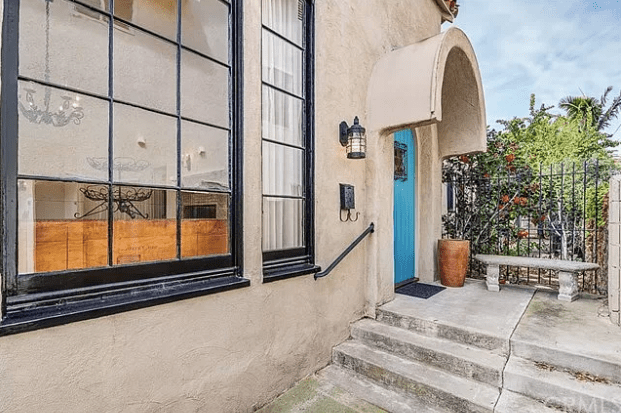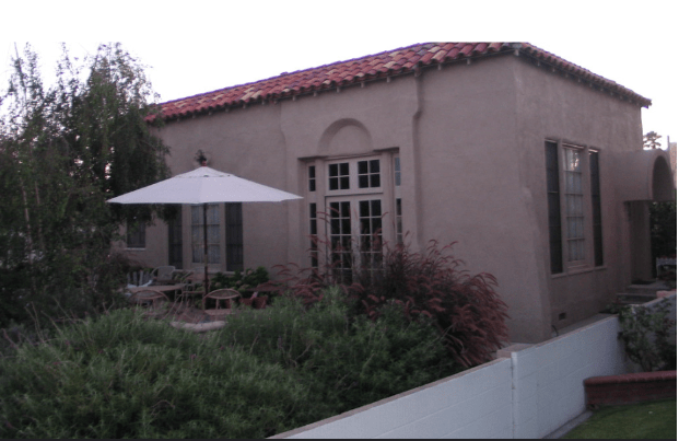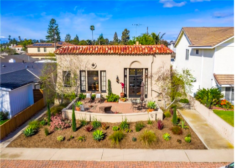 Dick and Sandy Dusterhoft purchased the home in the 1950’s when the house was very rundown. They restored it to its classic look of the 1920s. The home now sits just over a mile away from the beach and still has the original hardwood floors and Batchelder tile fireplace in the center of the living room. Below is the front of the home in Huntington Beach after its makeover by the Dusterhofts.