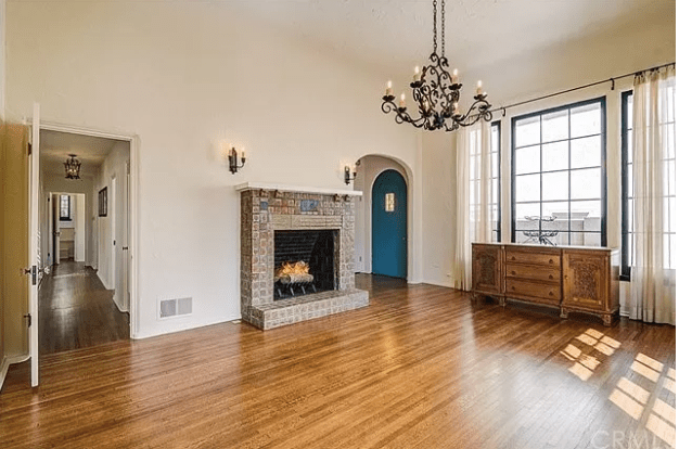 Beginning in 1949, 6793 Whitley Terrace was advertised for sale to be relocated. Lloyd W. “Blackie” Dye purchased the home and had it moved 42 miles south to 1817 Park Street in Huntington Beach. A seam in the wood floor serves as a reminder that the home was cut in half vertically for its transport to Orange County. Four feet of the top of the house had to be removed in order to move the house to pass under the low utility lines in Huntington Beach. There is a segment in the book, “Huntington Beach Chronicles: The Heart of a Surf City” by Chris Epting, in which Epting visits this house due to its unique history and that Jean Harlow may have resided in the home prior to its location. There was a picture in the book labeled: “The house believed to have once belonged to silver screen legend Jean Harlow”. Pictured below, that house is a 2-story home and does not look like the Whitley Terrace home. However, Epting mentioned that the home was bought by the Dusterhofts and that they had completely restored the home to its original charm. I am still doubtful that the house below is the same house because the Dusterhofts would have done extensive work.