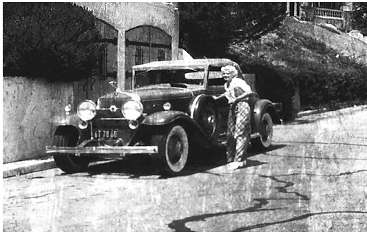 There has been several other “rumors” of Jean Harlow living in other Whitley Heights homes, but there has been little to no proof that she ever lived in Whitley Heights. Harlow used to visit her acting teacher , Samuel Kayzer, who lived at 6613 Whitley Terrace from 1933 to 1940. Burton Holmes took a photographs of Harlow and Kayzer in the 1930s. Below is a photograph of Harlow leaving 6613 Whitley Terrace. Harlow had also been linked to another residence on the same street, 6603 Whitley Terrace, which may have been stated in error, confusing Kayzer’s address with 6603 Whitley Terrace.