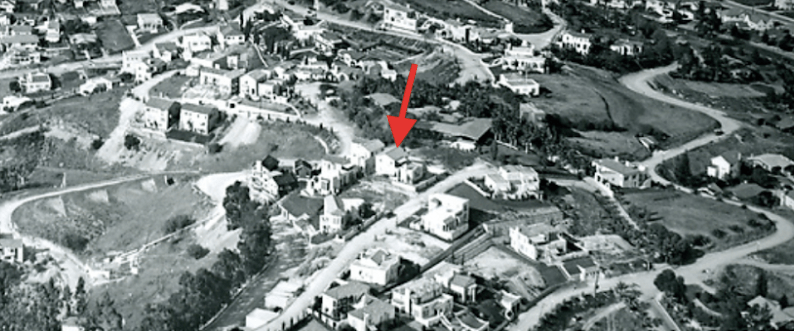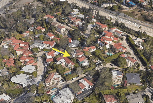 The house at 2034 Grace Avenue is partially obscured as it sits behind a gate and overgrown trees and shrubs that enclose the property. The Aurand’s literally circled themselves around the elite in Whitley Heights. Francis X. Bushman and Burton Holmes lived next door to him on the right and Eugene O’Neil lived next door on the other side. H.J. Whitley, Barbara LaMarr, and Ruldolph Valentino were all down the street from them. Below is an aerial of the area and 2034 Grace Avenue. To the right is Francis X. Bushman’s home at 2020 Grace Avenue.