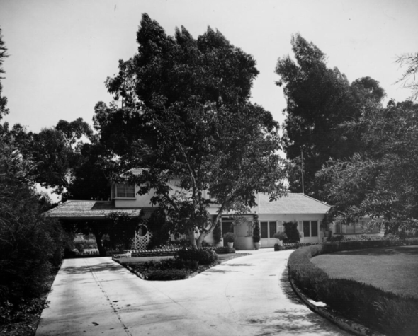 Between his singing and acting career, Gene served in the Air Force during World War II and part of his service was broadcasting a radio show for one year. While he was gone, his contact at Republic Studio was suspended and tried to void the contract when he returned home. The courts ruled in favor of the studio so he returned to Republic Studios and finished the contract with 4 more movies. He then went to Columbia Pictures and made over 100 films. Below, many websites have identified this house belonging to Gene Autry. While some indicate this is the Whitley Heights residence, others have suggested it was his home in North Hollywood.