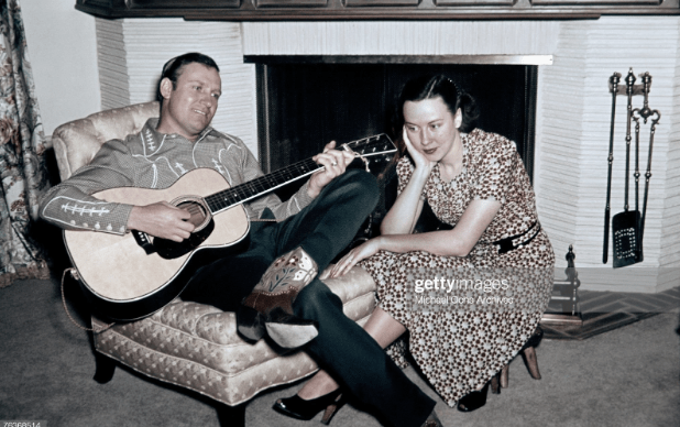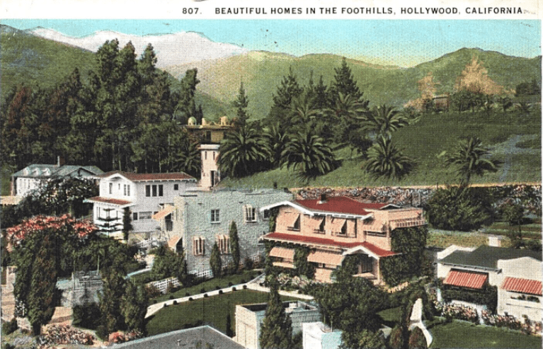 Country-western singer and actor Gene Autry and his wife, Ida, resided here between 1937-38. Born Orvon Grover Autry in 1908, he was raised in Texas and moved to New York in the 1920s to start his singing career. He then relocated to Hollywood, California to start his acting career in the 1930s. He was said to be residing at 6824 Whitley Terrace before moving to a home in Studio City. According to the book, “Public Cowboy #1: The Life and Times of Gene Autry”, Gene, his wife, and daughter drove to Hollywood in his brand-new Buick and found a spacious, two-story craftsman-style home at 6824 Whitley Terrace on a winding road with breathtaking views of the Hollywood Hills. Built in 1915, the house was located in a chic enclave known as Whitley Heights, filled with Mediterranean-style mansions that belonged to many movie stars. On a hilly lot populated with eucalyptus and pine trees, the wood-shingled home’s three bedrooms could comfortably accommodate Ina, Gene, and his siblings. Ina immediately jumped into furnishing and decorating the rental property. Below is Gene and Ida Autry in the Hollywood home.