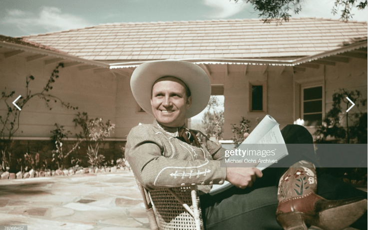 In 1951, he opened his own production company, Flying A Productions and bought Melody Ranch in San Fernando Valley. Many “B” westerns were filmed at Melody Ranch including the initial shows of Gunsmoke. Gene sold the ranch in 1990 after his horse died. The family who bought the ranch restored it to the Melody Ranch Motion Picture Studio and Melody Ranch Studios on 22 acres. The ranch has the Melody Ranch Museum open year-round; and one weekend a year, the entire ranch is open to the public during the Cowboy Poetry and Music Festival, another legacy of Autry’s multiple talents.