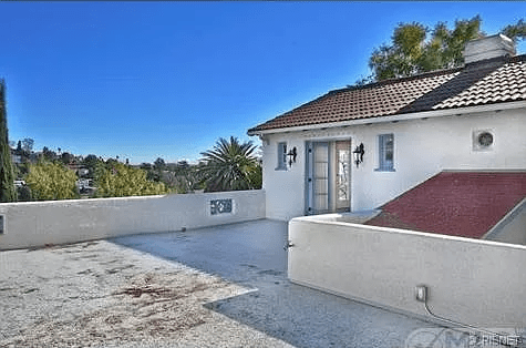 In 1951, Major White returned briefly to radio– this time as a disc jockey at KNX in Hollywood. Now calling himself simply Andy White, he co-hosted the program “Encore Night” with Jim Hawthorne. The show was aired Tuesdays at midnight where Andrew played 1930s pre-recordings while reminiscing about the “old days”. While he attracted an older crowd, the show was short-lived. On June 7, 1957, White appeared briefly on a Ralph Edwards “This is Your Life” television show honoring Ted Husing, an old colleague. Andrew died in 1961 while living at this residence. Below, 6617 Iris Drive has a patio on the roof of the residence.