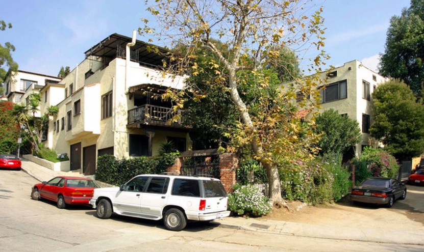 1914-1928 N. Las Palmas Avenue sits on the southeast corner of Las Palmas Avenue and Emmet Terrace which is entered off of Franklin Avenue. Originally, the property was built as a 10 room residence (2 bungalows) for two families in 1919 and listed the address as 6680-90 Emmet Terrace on the building permit and 6684 Emmet Terrace on voter registrations between 1920-21. Alice B. McCormick, a widow from Uniontown, Pennsylvania had the duplex built with the assistance of architect C.R. Spink and contractor Ramey Company. She relocated to Hollywood with her divorced daughter, Mabel McCormick Miller, age 36, and her grandson, 13 year old, George Miller. This apartment complex is part of the Whitley Heights Historic Overlay Zone and will never be torn down or altered so that it loses its original characteristics.