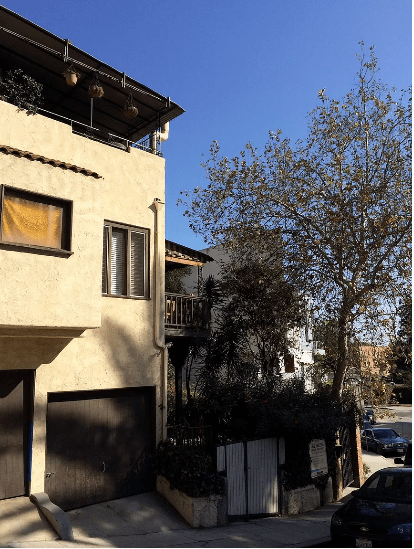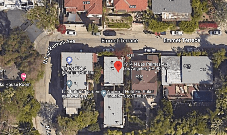 While both Hervey and Preston married and moved out of the Las Palmas apartment, Zena stayed here until the late 1950s. She died in 1970; Hervey died in 1984. Below the area where the garage and storage is located on Las Palmas Avenue is shown.