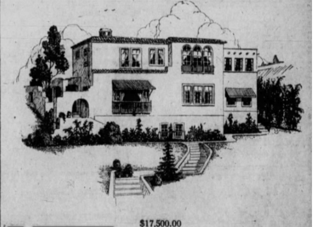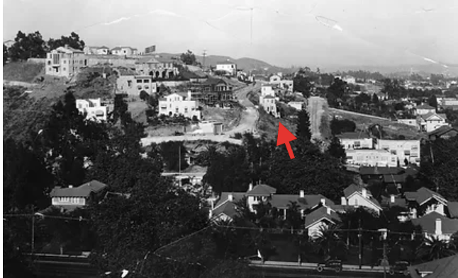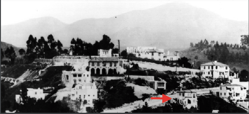 Above and below are early photographs of Whitley Heights in the 1920s showing 6673 Emmet Terrace when it was first built. Notice the unpaved streets in the photographs. The photograph below appears to be somewhat older as the “Whitley Heights” sign is still on display.