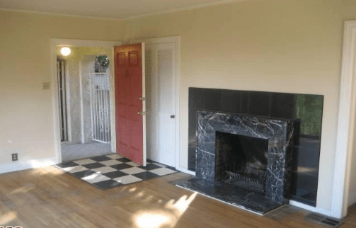 Since the residence has only a total of 1,472 square feet, the rooms appear to be small which was common back in the 1920s. Upon entry into the home, there is a fireplace in the living room with a black and white checkered entry. Also on the first floor is the kitchen (with a breakfast area), a dining room, a bathroom, one guest bedroom/bathroom and an outside patio with a mix of hardwood floors and tile.