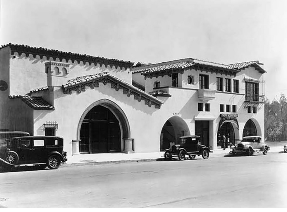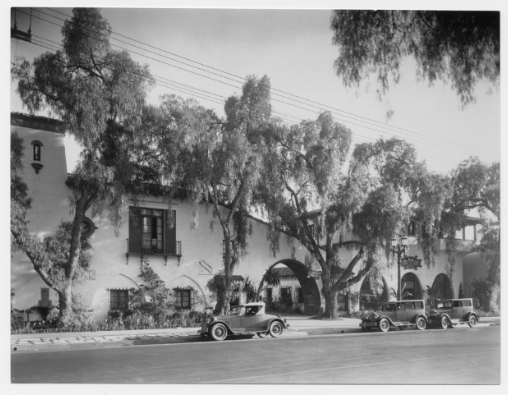 Above is the Fred Thompson Building, a.k.a. the Court of Olive, because of a olive tree that sits in the center of the courtyard, located at 6530 Sunset Blvd. In 1927 cowboy actor, Fred C. Thompson wanted to built an investment property at that location. He hired architects Carl Jules Weyl and his business partner, Henry Gogerty to design the 2 story Spanish shopping complex that contained a courtyard. Weyl even had his business located at the building.