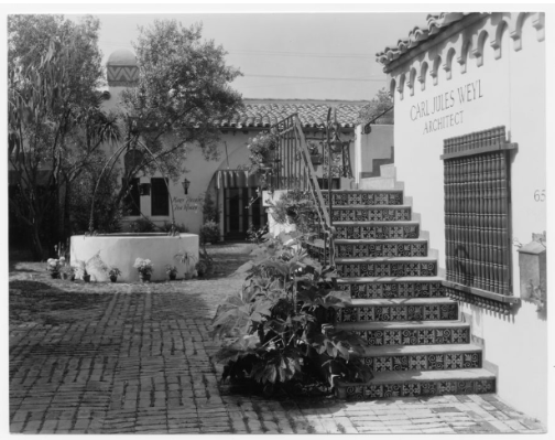 Weyl had a productive business in Los Angeles in the 1920s and he was able to design and live in his own home that was built in 1930 at 2015 N. Curson Avenue. Below, the front of his house has the Spanish features that many of his other buildings also had. Singer Kurt Cobain’s daughter, Frances Bean Cobain, purchased the home in 1918 and recently sold it to move to San Diego.