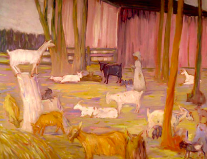 Herbert “Bert” Chester Cressey (1883 – 1944) was born on the ranch near Compton, and studied at University of Southern California and National Academy of Design under Robert Henri. At the outbreak of WWII he began working in a movie studio as a “prop man” where a work-related accident was the cause of his death on August 18, 1944. The Cressey ranch was given to the city of Compton and is now known as Gonzales Park. Below is an early California oil painting by Herbert “Bert” Cressey, titled Contentment.