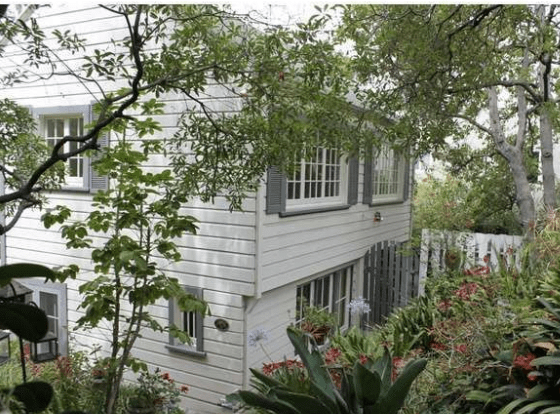 One of the first well-known renters was director Roland West and his wife, actress Jewel Carmen between 1924-1925. According to William Donnati, the author of The Life and Death of Thelma Todd, they were living at “6662 Whitley Heights, a two-story residence on a steep street. Though located in an exclusive neighborhood, the house was peculiar, since the roof was practically level with the street. Visitors had to use a descending walkway to enter. Roland and Jewel took particular interest in their garden which was filled with plants and exotic flowers”. Other sources had the West’s living across the street at 6665 Emmet Terrace, but that residence is on a upslope. The only other property in Whitley Heights with a street address of 6662 is on Whitley Terrace, but that property is not level with a street and has one level above the street. 6665 Odin Street was not on a downslope.