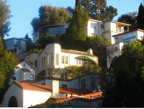 2021 Whitley Terrace Steps (pictured above with the green awning above one of the windows) was built in 1923 by Blair & Mackinga, well-known builders in the 1920s. The property was first given the address of 6719 Milner Court through 1926. The 2,016 main house has two bedrooms and 1.5 bathrooms. There is also a separate one-bedroom guest house on the property. There is no direct road access and the home can be accessed by climbing 159 stairs from Milner Road or going down them from Whitley Terrace.