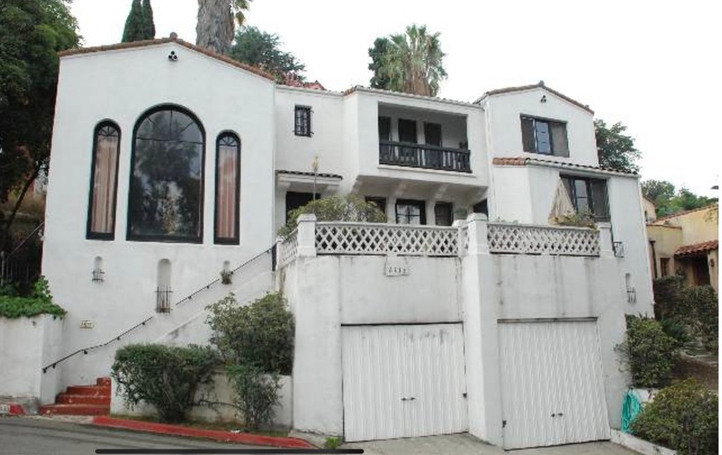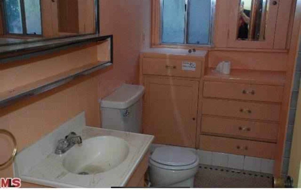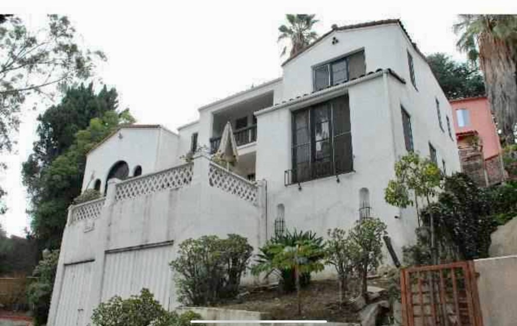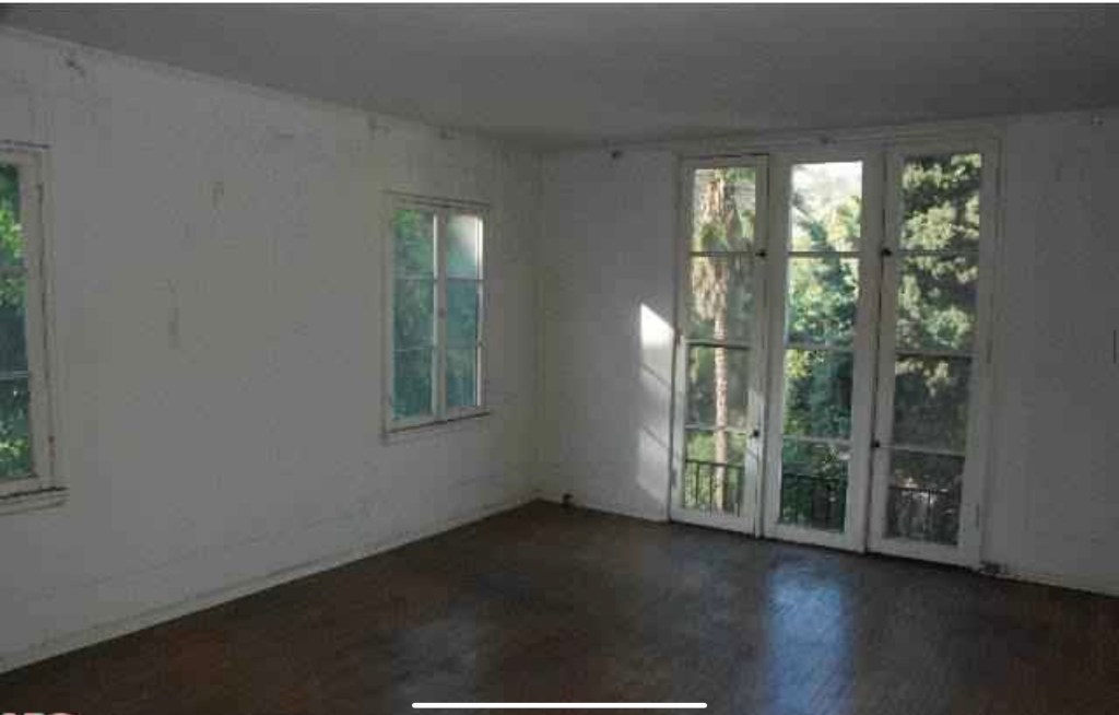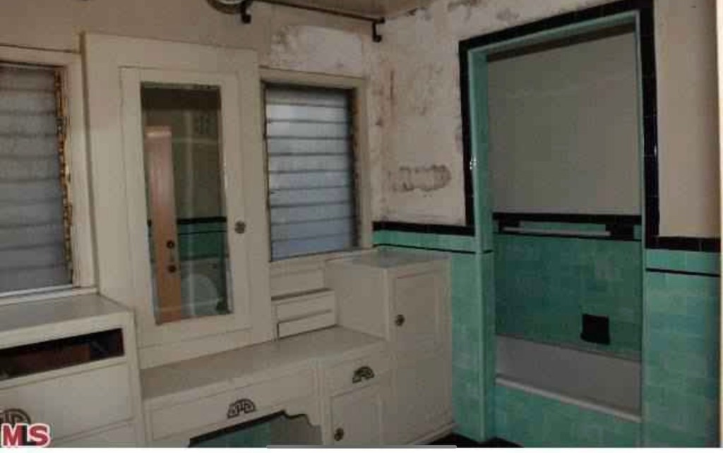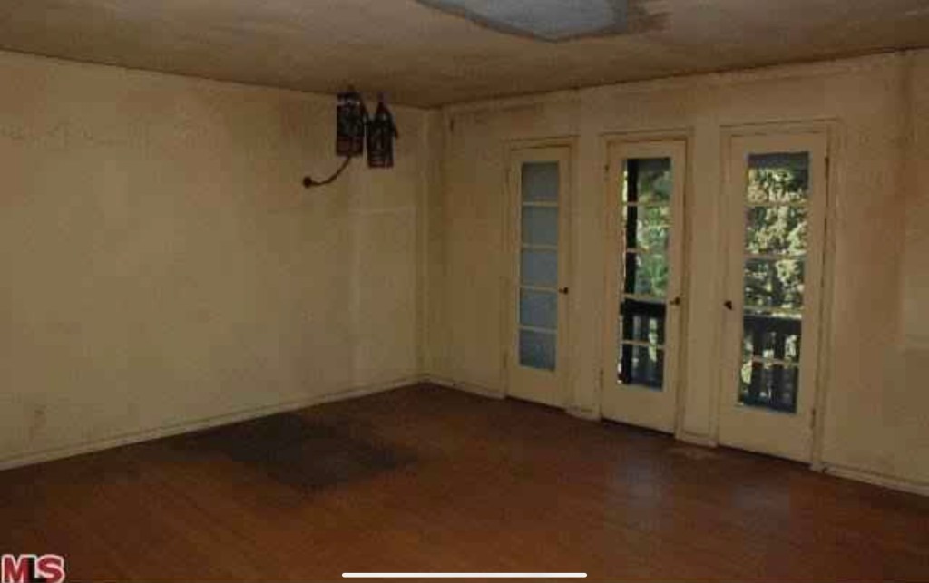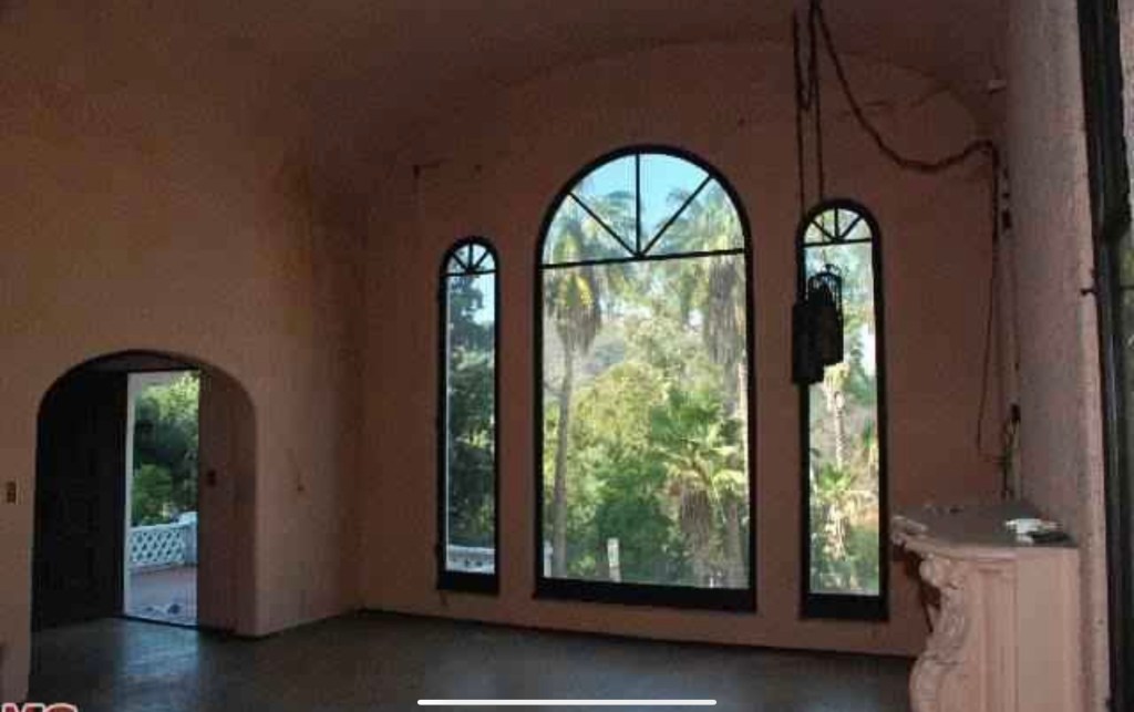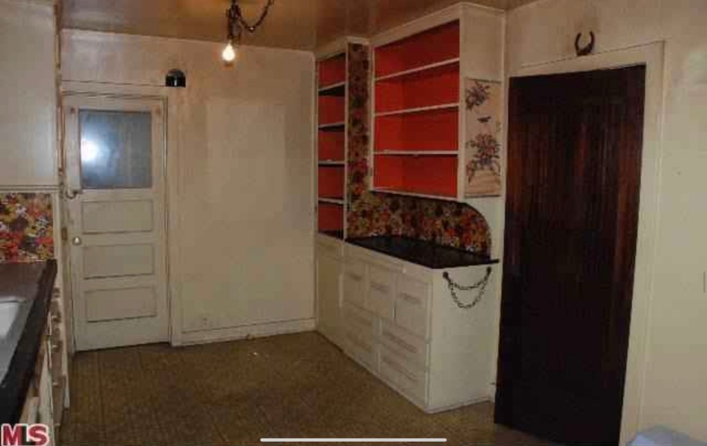 Still, Evelyn got arrested again in May of 1946, listed as Evelyn E. Murray, when she hit another car and both people were ejected from that vehicle. Then she hit a parked car that was occupied and sent that woman to the hospital too. It appears that Evelyn had difficulty keeping jobs and had a drinking problem. A few months later, on July 18, 1946, she was found dead in her bed at 2133 Fairfield Avenue. An autopsy was ordered and her parents indicated that she had just returned from an east coast trip and complained of being tired and the left part of her brain hurt. She had recently gotten a job at the Screen Actors Guild. There was no further information regarding the results of the autopsy. Her father, Richard, died a year later at the age of 71. Norah and her brother, John continued to live at 2133 Fairfield Avenue and John died in 1954. Norah continued to live in the house until 1960. She died in 1971 in Los Angeles. There was little work on on this home over the years as it changed ownership two more times. The house was bought in 2010 for $630,000 and was in poor condition as evidenced by the following photographs. The first two photographs are of the living room with the pink walls and ceiling.