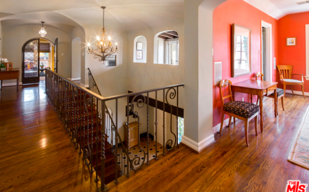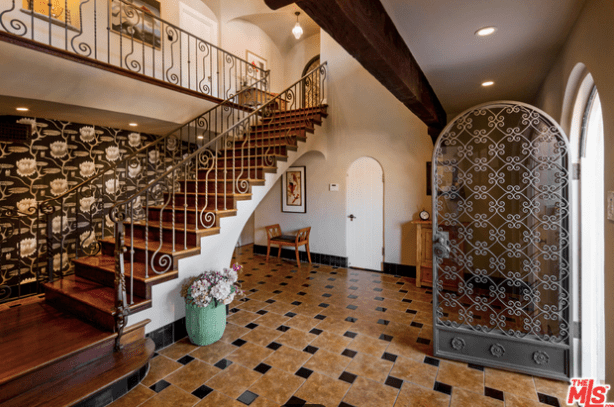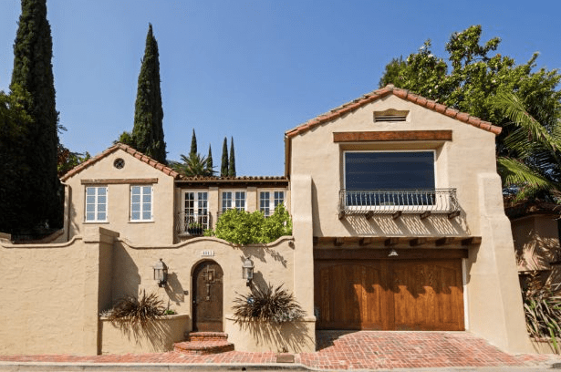 6861 Iris Circle was designed and built by real estate developer Bruce McCaskill in 1926. McCaskill had previously worked with artist Charles DeGrolle to build 6835 Iris Circle and McCaskill resided at 6613 Whitley Terrace while DeGrolle lived at 2178 Fairfield Avenue (demolished for freeway). 6861 Iris Circle is a Spanish villa consisting of 3,238 square feet with 4 bedrooms and 4 bathrooms. There is a private garden courtyard which is surrounded by a wall in the front of the home which leads into the entryway.