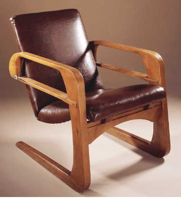 Weber’s most famous work is probably the “Airline” chair of 1934, which exemplified the clean, streamlined style of the age, with its seat supported by a cantilevered frame reminiscent of wooden aircraft components. Practical, stylish and economical to construct and ship, the Airline chair failed to find a manufacturer. Most surviving examples come from the batch of 300 made for the Walt Disney Studios, largely handmade. Weber is also noted for being the main architect of the Walt Disney Studios complex in Burbank, California.