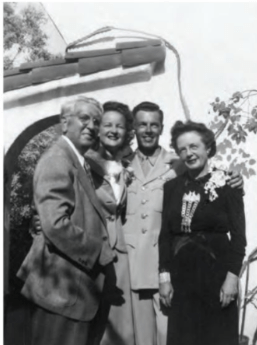 In 1943, Ursula became engaged to and married Alfred E. Stendahl, who was in the Army. Below is a photograph of Earl and Enid Stendahl (far left and right), with their son, Alfred and Ursula on their wedding day taken at the Weber residence in Whitley Heights.