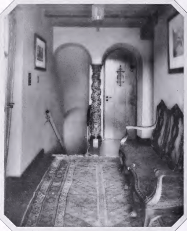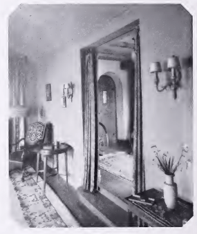 Looking from the living room into the hall, according to the magazine article, “a glimpse that illustrates the formal dignity of this home. Definite periods have been “disregarded” but authentic pieces of various periods mingle in perfect accord because of the scale of proportions has been strictly observed”.