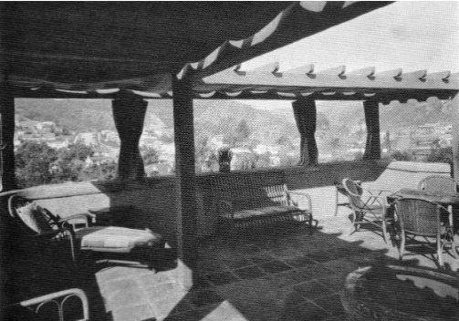 The photos below compare and contrast the house as it looks more recently and when it was photographed in Better Homes and Gardens magazine. In the black and white photo below, the Pumphrey’s prized twisted column from a church in Spain and and a long 17th Century Portuguese bench.