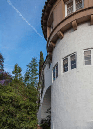 6727 Milner Road (formerly built as 6715 Watsonia), is a three-story Mediterranean home that has a round tower with a wooden beamed roof (see below). Weber built the home for Marshall Pumphrey as both worked for Barker Brothers furniture store. This home was featured in Better Homes and Gardens in the 1920s and featured some furniture and fixtures on behalf of Barker Brothers.