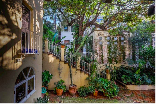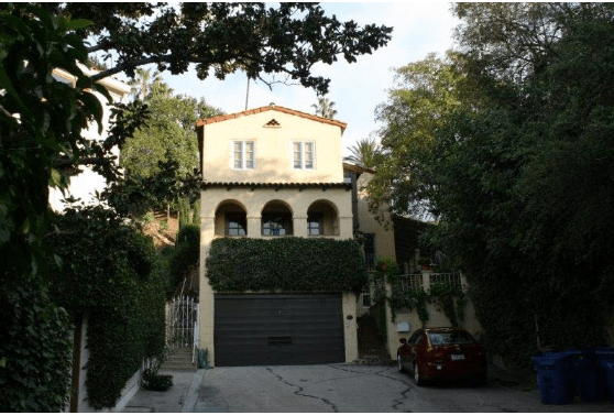 Richard and Karen Hale Wookey bought the home and were able to built the fireplace and put in French doors in the living room in the late 1960s. Richard, a casting director, and Karen, a script supervisor, remained in the home for over a decade. Karen was the daughter of actors Alan Hale and Gretchen Hartman. Her brother was Alan Hale, Jr. of Gilligan’s Island. Karen was credited as a script supervisor of over 46 productions starting with the television show, Get Smart in 1967. She has also worked on: Paper Moon (1973), All the President’s Men (1976), Lifeguard (1976), Heaven Can Wait (1978), Urban Cowboy (1980), Romancing the Stone (1984), Patriot Games (1997), and The Devil’s Own (1997). Karen died of heart failure in 1998. Below is the front of 2062 Watsonia looking towards the back of the Kem Weber home on Milner Drive.