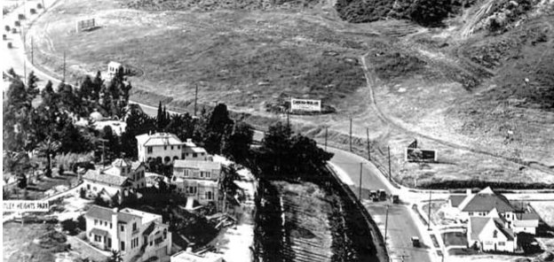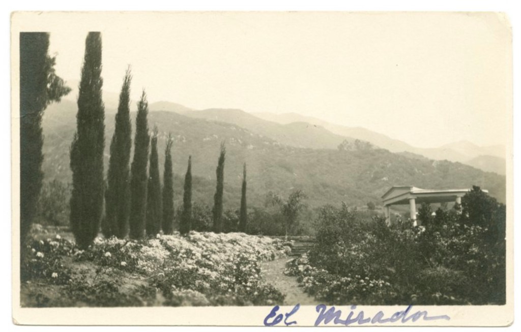 By 1917, Emma moved to 2127 Cahuenga Blvd (which relocated in 1950 to 2116 Whitley Avenue and still stands) and then in 1918, she relocated to 2209 Cahuenga Blvd., which was demolished in 1963. In 1920, Emma moved down the street to 1729 Cahuenga Blvd. and was listed as living there with her grandson, Kirk Hambleton and housekeeper, Shirley Bartholomew. During this time, Emma bought property on the summit of the hill adjoining Whitley Heights bound by Cahuenga Blvd., Curfew Street, and Whitley Terrace (Iris Circle area). Emma created a private park with tropical trees, shrubs, flowers and fruit trees and called it “Araby”. She sold the land back to H.J. Whitley for $55,000, property he sold in 1903 for less than $2,000 and again, profited from another sale. This would be Whitley’s fifth installment of Whitley Heights, called the area “Whitley Heights Park”.