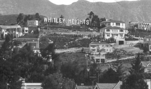 6650 Whitley Terrace was built in 1920 at the same time that H.J. Whitley was building his home located right above this property on Grace Avenue. Both residences were built by architect A.S. Barnes who was sent to the Mediterranean by Whitley so he could study the architecture and replicate it on the hill. In addition, 6650 Whitley Terrace was built for a widowed millionaire named Emma Linder Hamilton who wanted the home to resemble Whitley’s house on Grace Avenue. Below, 6650 Whitley Avenue can be seen just to the right of the Whitley Heights sign. Whitley’s home is right above this home.