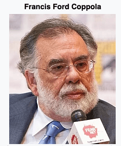 Coppola was born in 1939 in Detroit, Michigan to Carmine Coppola, a flutist, who played for the Detroit Symphony Orchestra. Carmine’s older brother, August, is an author and his younger sister, Talia Shire, is an actress known for her role as Adrian in the Rocky movies. After attending Hofstra University, Coppola enrolled in UCLA film school in 1960. One interesting antidote: while he was at UCLA, he met Jim Morrison of the Doors and later used his song “The End” in his Apocalypse Now film in 1979.