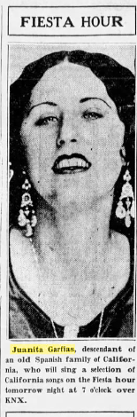 Juanita would often participate in local plays and musical presentations that reprised the history of her ancestors and would dress in authentic Spanish costumes. In 1931, Juanita married Jose Manuel Del Solar, but quickly obtained an annulment as he lied to her, pretending to be from a wealthy Peruvian family that had a vast South American estate. Apparently, Del Solar was very authoritative and controlling in their marriage and Juanita wanted out. In 1932, Juanita was part of the Olympics when they took place in Los Angeles as she dressed in costume and helped with the event. In 1935, Juanita had two minor roles in “Storm Over the Andes” and the Spanish language version, “Alas Sobre El Chapo”.