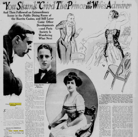 At the beginning, young Ruth was happily living with the prince; her father bought them a house on Long Island. However, Mr. Walters was not happy the prince did not have a job and had him work at one of his hotels in New Jersey. That only lasted one week before the prince walked off the job. Two years later, Ruth’s father died from a horse accident so Ruth and the prince moved to France to the French Riviera. They did have one daughter, but Ruth grew tired of the prince’s behavior. One evening, while at the Biarritz Casino in 1924, Ruth is with her husband eating in the restaurant when Andrew Reid of Baltimore walked in and Ruth immediately went over to talk to him. It turns out that Ruth and Andrew were old school mates and were rumored to be having an affair. This angered the prince who challenged Andrew to a sword duel in the casino. The authorities came and it was Andrew who got arrested as the prince tipped them off that he had some outstanding warrants. While Andrew is in jail, Ruth is going to visit him and finally filed for divorce.