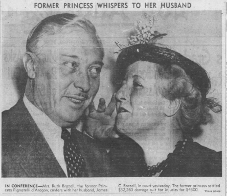 After a failed reconciliation, the prince counter-sued and was able to strip Ruth of her princess title and gain custody of their 9 year old daughter, Princess Marie Isabelle. Ruth decided to move to California and rented 6680 Whitley Terrace upon her arrival. Now stripped. of her title and no longer an American citizen, Ruth got her citizenship restored by 1933. She also met and married James Brazell in 1935, but that marriage did not last long because he found love letters from a Naval officer and filed for divorce in 1941. During the divorce, Ruth claimed that Brazell had beat her twice and that the letters were not romantic in nature. She also claimed that Brazell had used her for her money and had not worked since they had gotten married. Ruth never married again and died quietly in 1972.