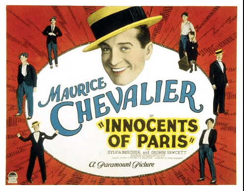 In 1923, the highest paid French actor went into an asylum to treat depression; he was supposed to appear in New York on stage, but the contract was cancelled. After he failed suicide attempt, Chevalier met actress Yvonne Vallee (both pictured above) and after dating a few years, they were married. When Chevalier got the contract with Paramount, it was considered a big deal and when he and is wife arrived in New York, they were greeted with a crowd as they got off the ship, led by a party at the Ritz-Carlton. The Chevaliers then made their way out to Hollywood where Maurice’s first movie was being written. “An Innocent in Paris” was made into production by 1929; at first, Chevalier was given English lessons but they stopped as Paramount quickly discovered his French accent and singing voice was to be capitalized on. Chevalier was credited for 58 movies including Gigi, starring Leslie Caron, in 1958.