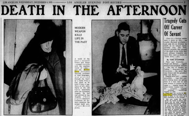 The Parry’s son, Adam, followed in his father’s footsteps and became a professor at Yale University with his wife, Anne Amory. However, both endured their own tragedy in 1971. On June 10, while in Paris, they were killed in a motorcycle accident. They were returning to France from Germany on a motorcycle they had just purchased. While turning into a highway near Colmar, they collided with a bus and were killed. Professor Parry was 43 years old and his wife was 39. His mother and sister where both living in Cambridge, Massachusetts.